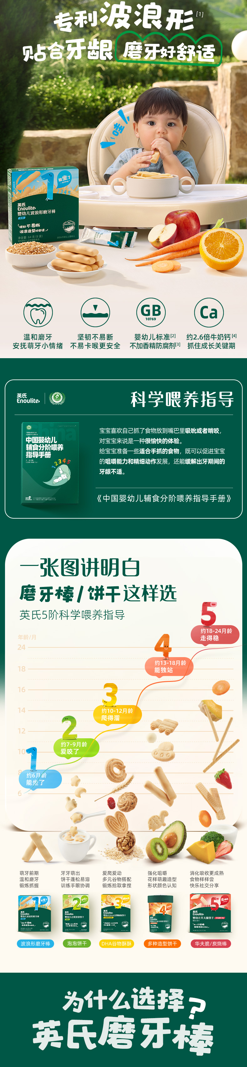 英氏磨牙棒婴儿6个月以上口欲期高钙波浪造型抗压 【防掉】打孔磨牙棒原味80g
